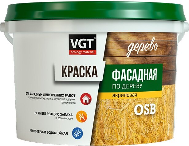 VGT ВД-АК-1180 краска фасадная ПО дереву акриловая, белая, матовая (3кг)