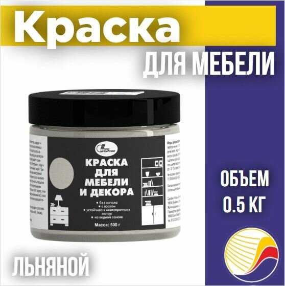Краска для мебели и декора, без запаха, льняной, 0.5 кг