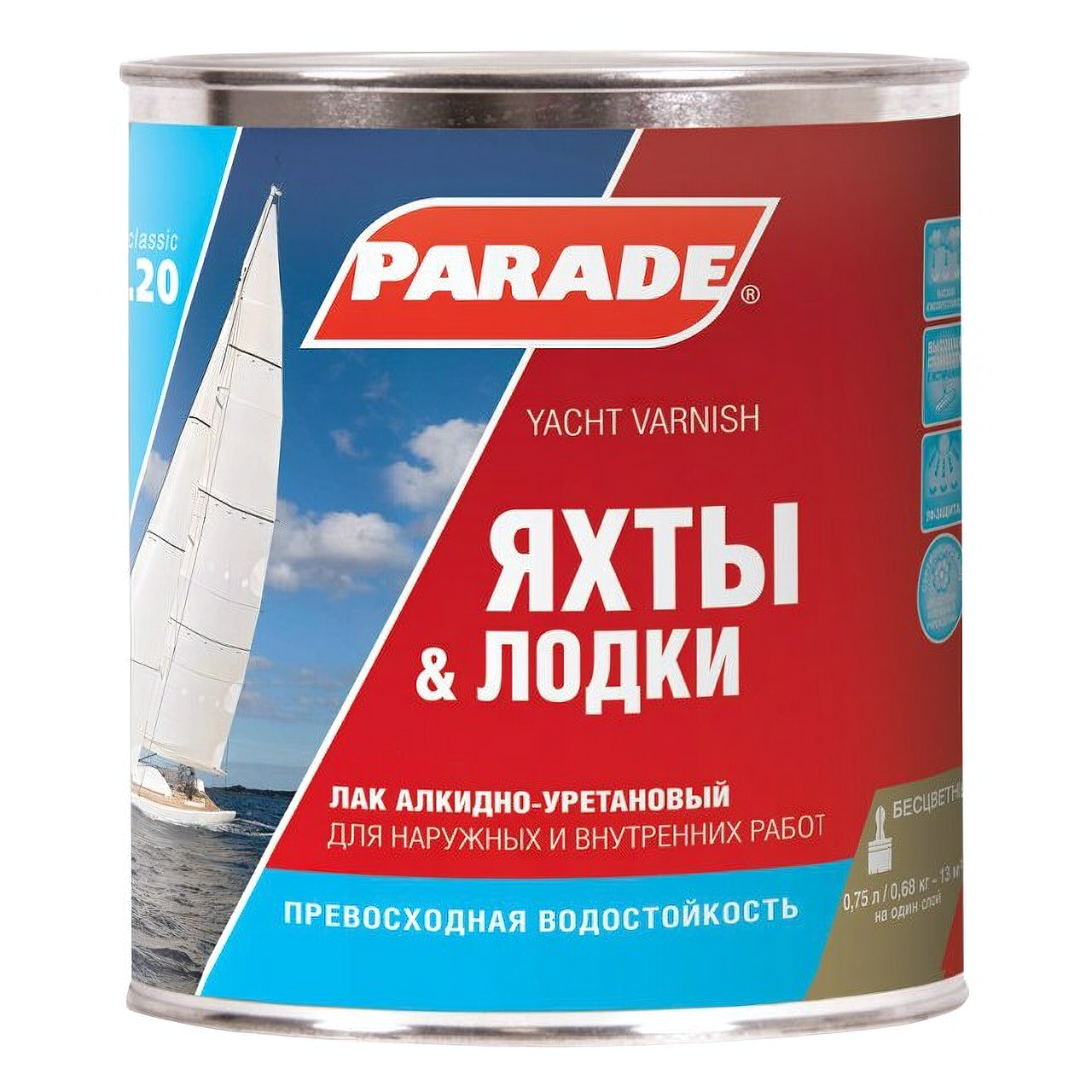 Лак яхтный Parade L20 алкидно-уретановый глянцевый 0,75л
