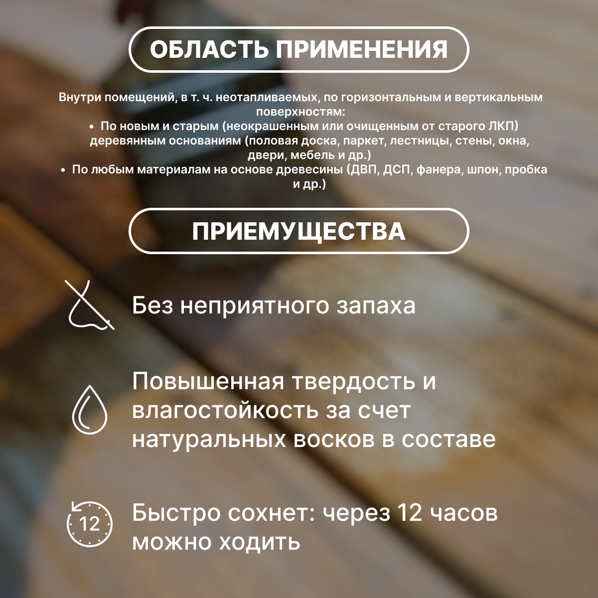 | Дополнительная информация | температура применения от +10°С, относительная влажность воздуха не более 70%; допустимая влажность древесины до 15%; количество слоев 2-3 |