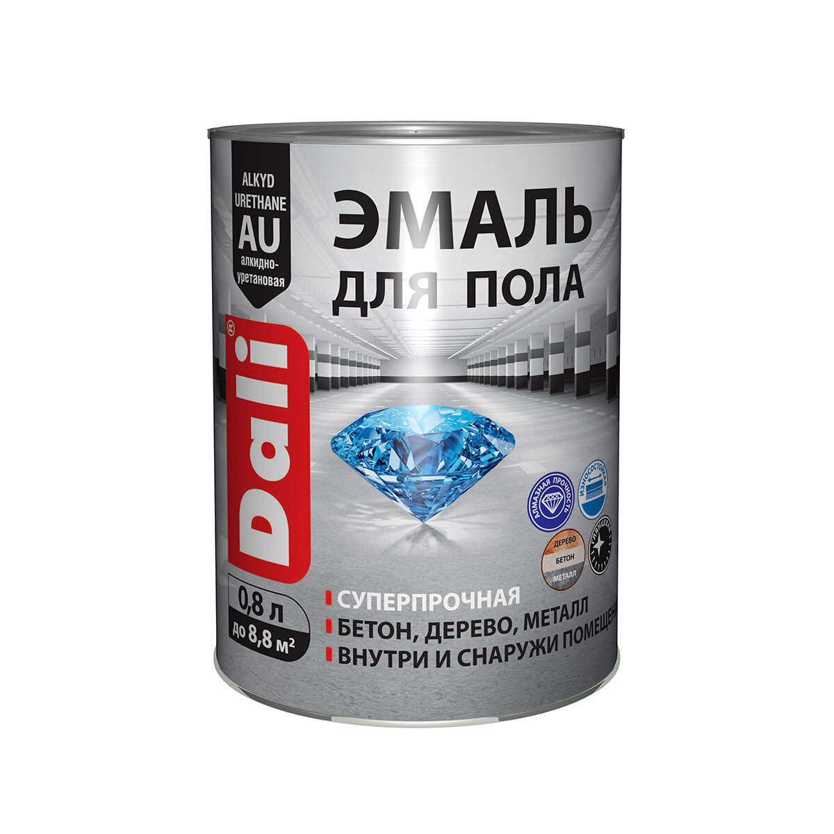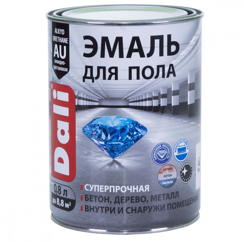 Эмаль для пола Dali, алкидно-уретановая, глянцевая, серая, 0,8 л