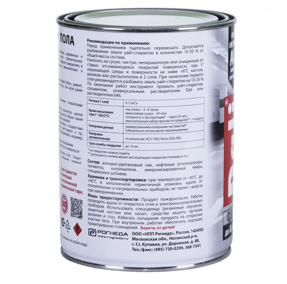 Эмаль для пола Dali , алкидно-уретановая, глянцевая, база A, белая, 0,8 л