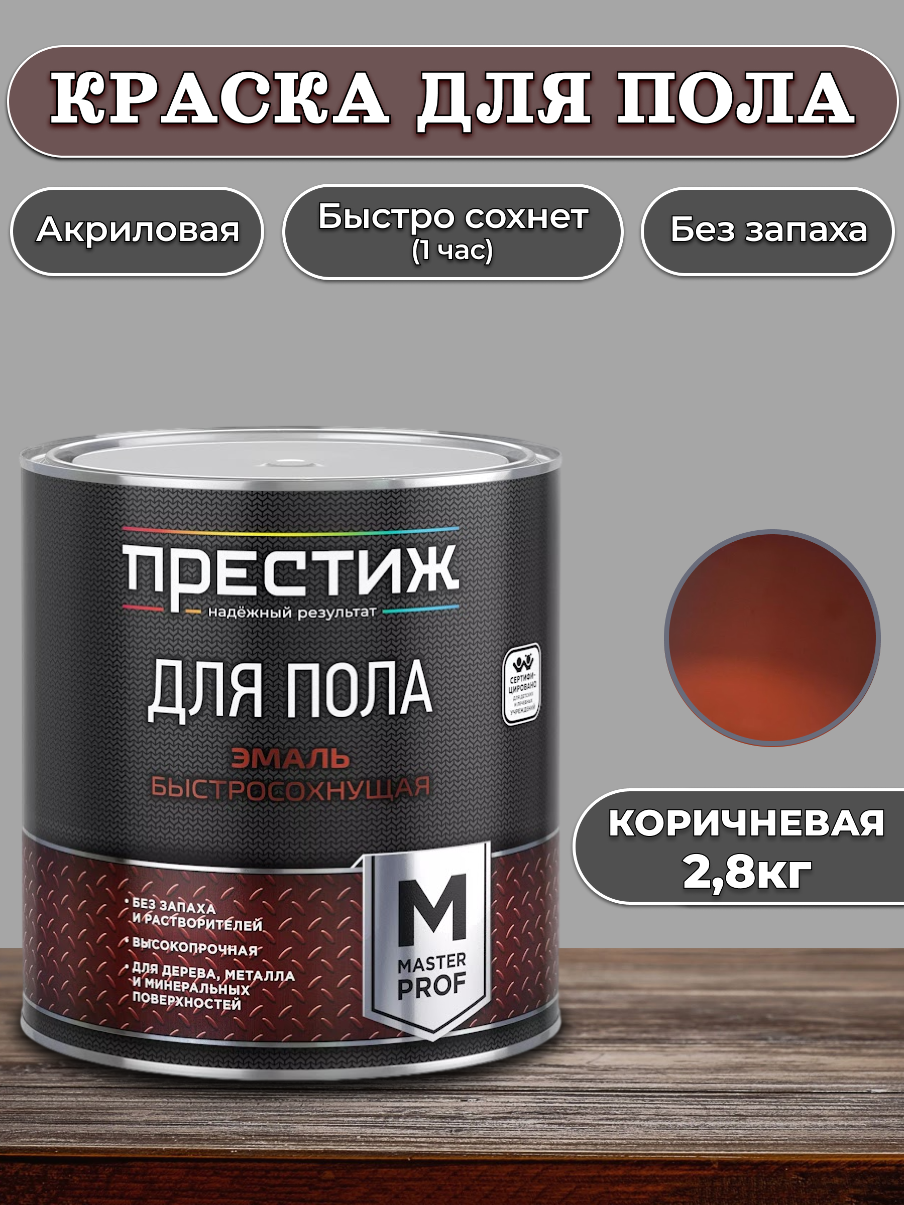 Эмаль для пола быстросохнущая Престиж , акриловая, 2,8 кг, коричневая