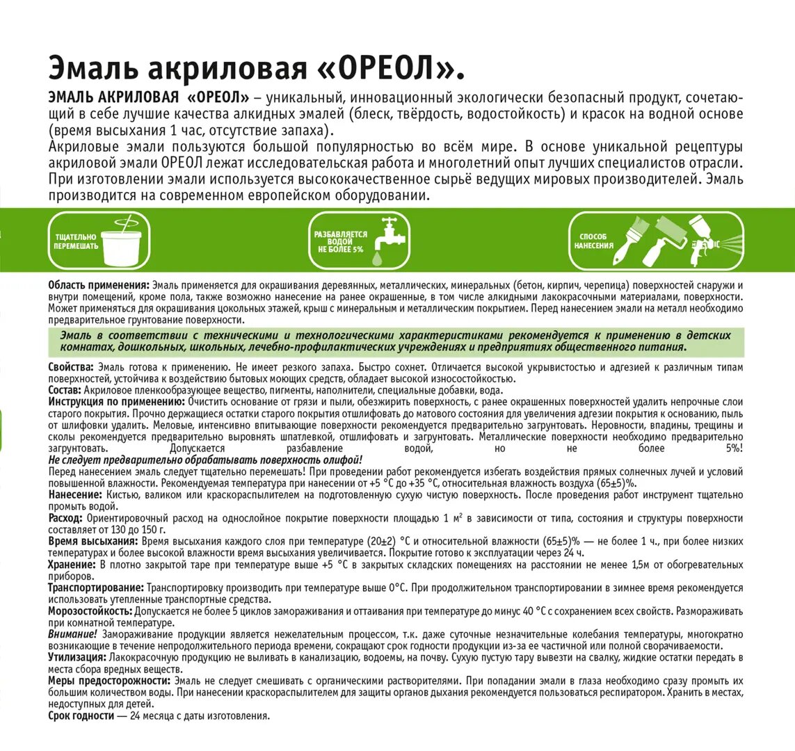 СохранитьЭмаль универальная акриловя Ореол (1,9кг) зеленый глянцевый интересное: