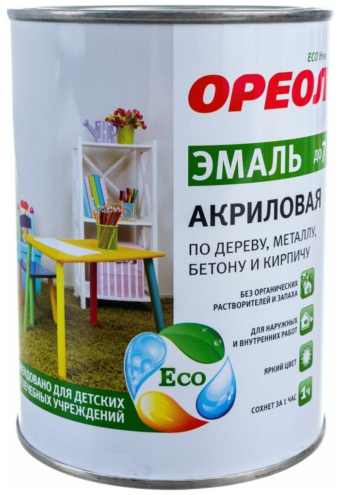 Эмаль Ореол, для внутренних и наружных работ, акриловая, глянцевая, слоновая кость, 0.9 кг