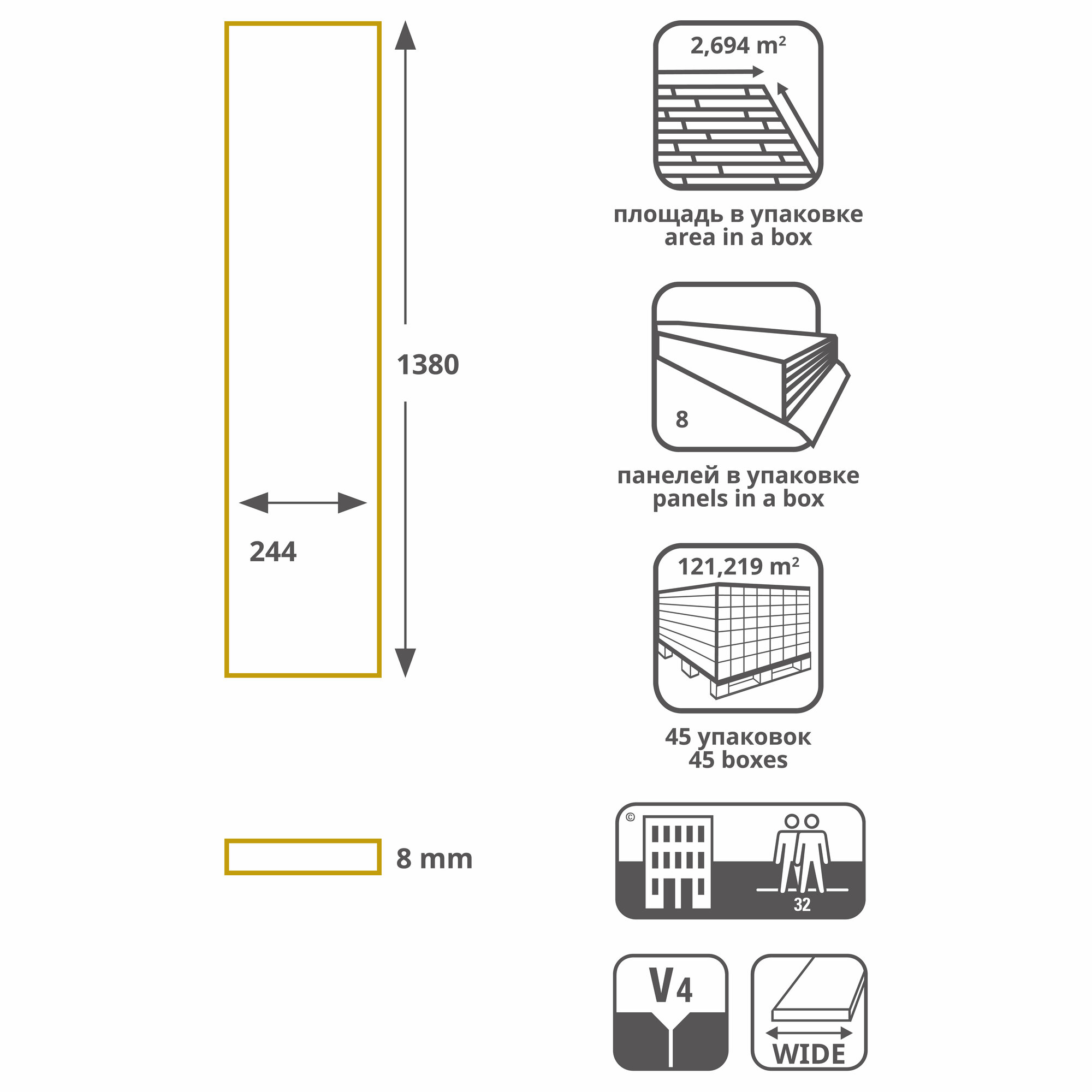 Ламинат Kronostar Eventum D7074 Дуб Мирум, 1380х244х8мм, 32кл (2,694м2, 8 шт в уп) интересное: