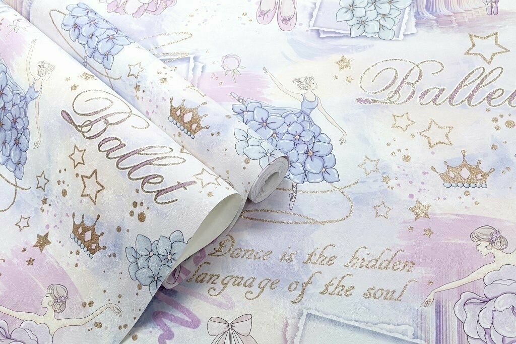 Купить Обои виниловые на флизелиновой основе детские, балерина, горячее тиснение, моющиеся, 1.06х10.05м. Палитра Балет для девочек арт. 71905-65