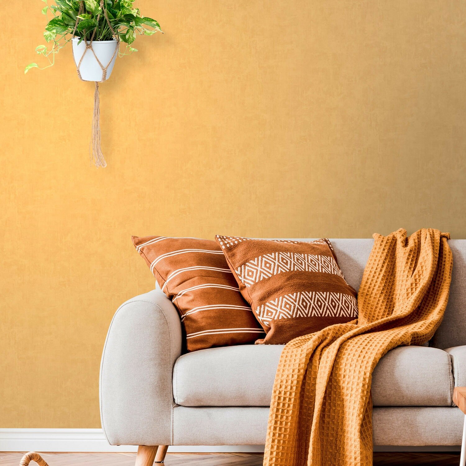 Обои виниловые, рогожка темно-бежевая, однотонные, метровые, для гостиной, Basic