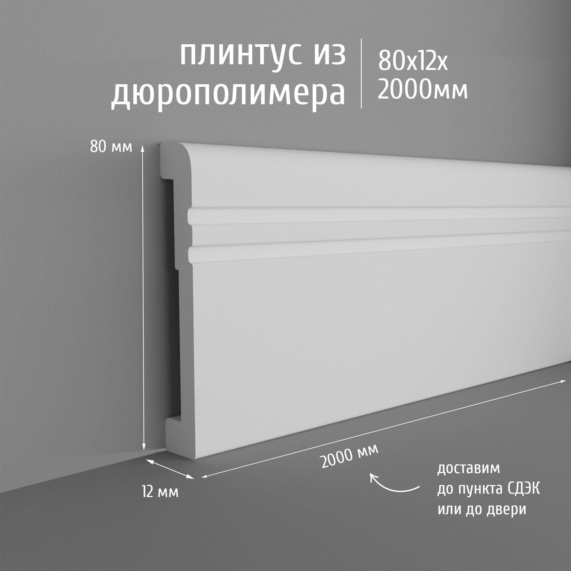 Плинтус дюрополимер напольный экополимер PM080-12 80x12 мм белый, 1 шт. интересное: