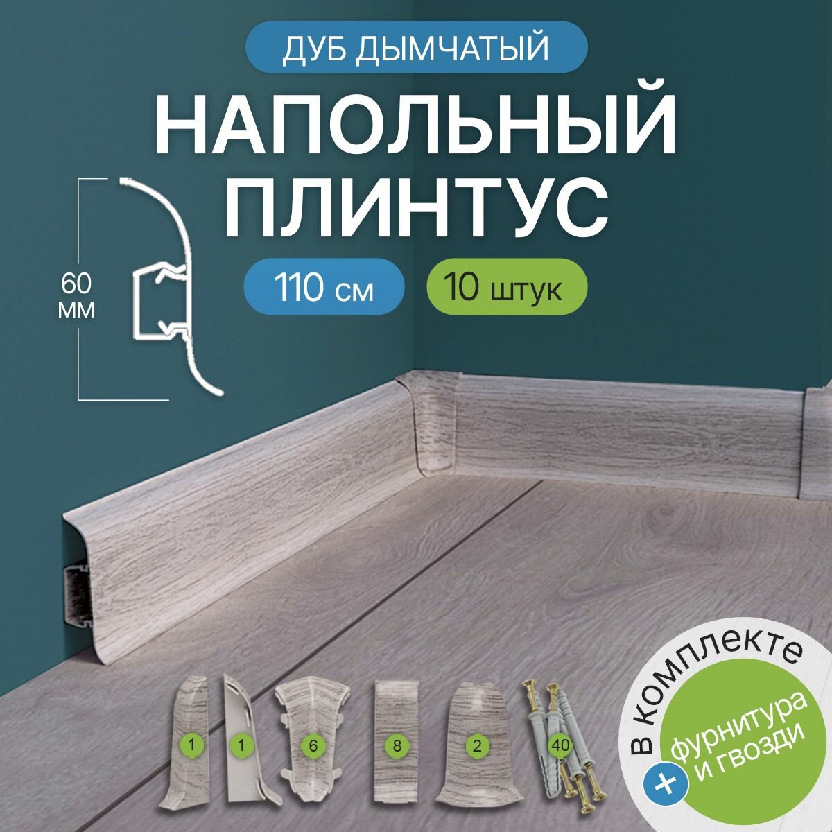 Купить Плинтус напольный, 10шт 1100x60 мм, с кабель-каналом , цвет Дуб Дымчатый