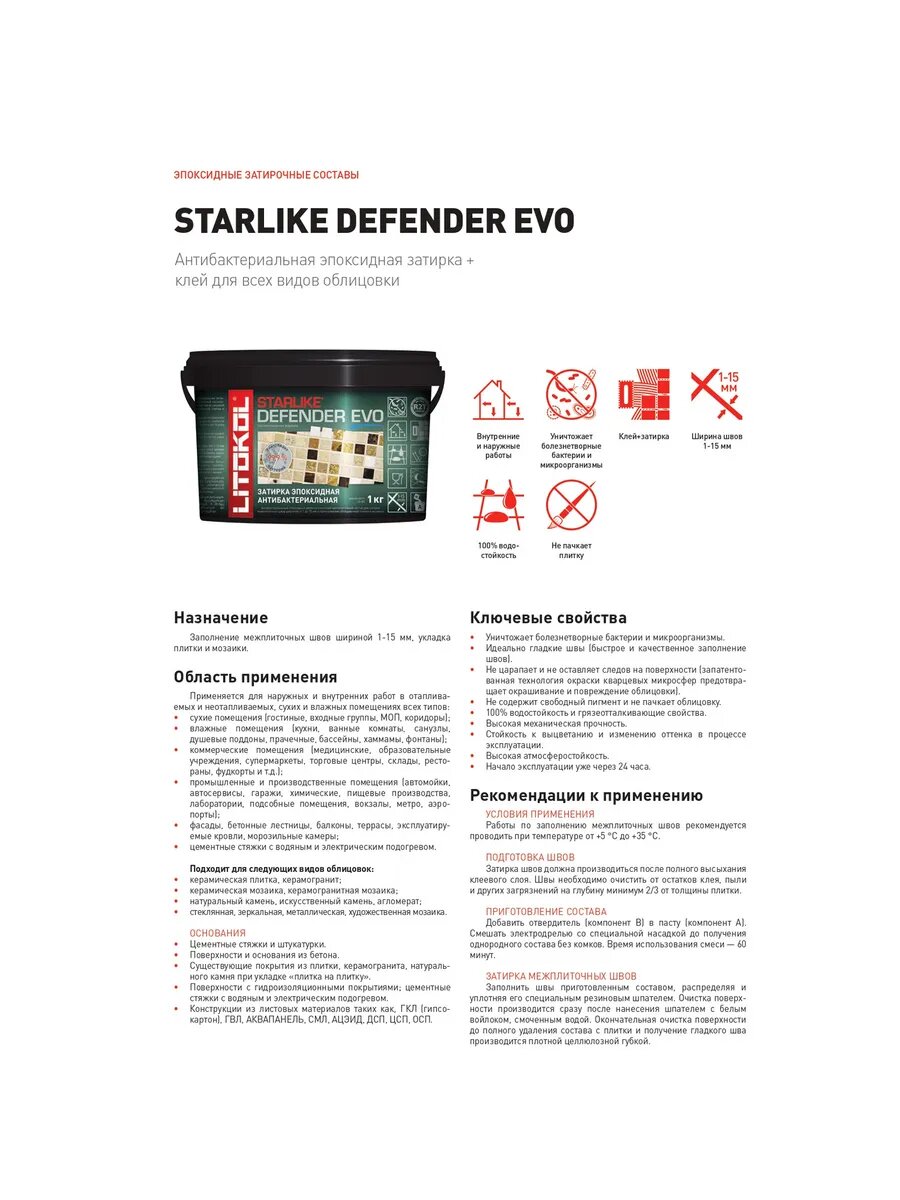 Эпоксидная затирка STARLIKE DEFENDER EVO 1-15 мм Грейдж 1 кг, 1 шт. в заказе