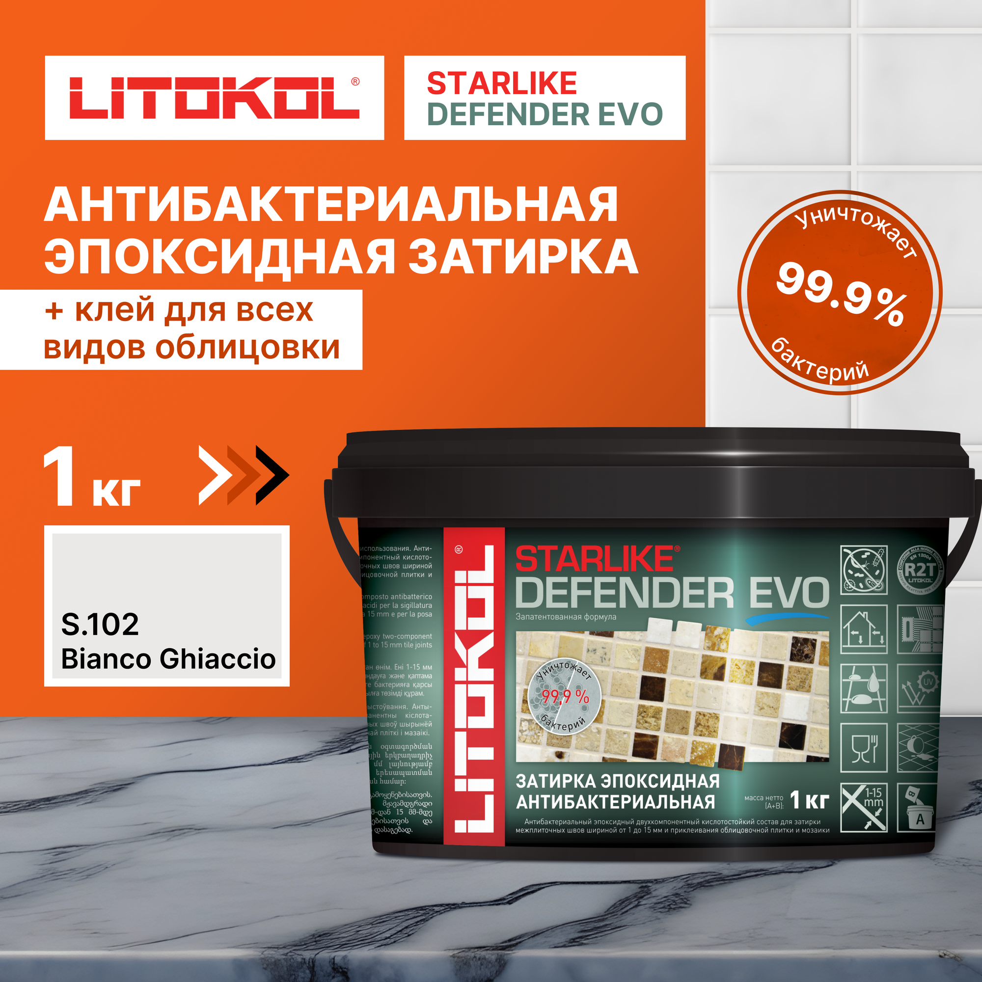 Затирка для плитки эпоксидная LITOKOL STARLIKE DEFENDER EVO (старлайк дефендер ЭВО) S.102 Bianco Ghiaccio 1кг