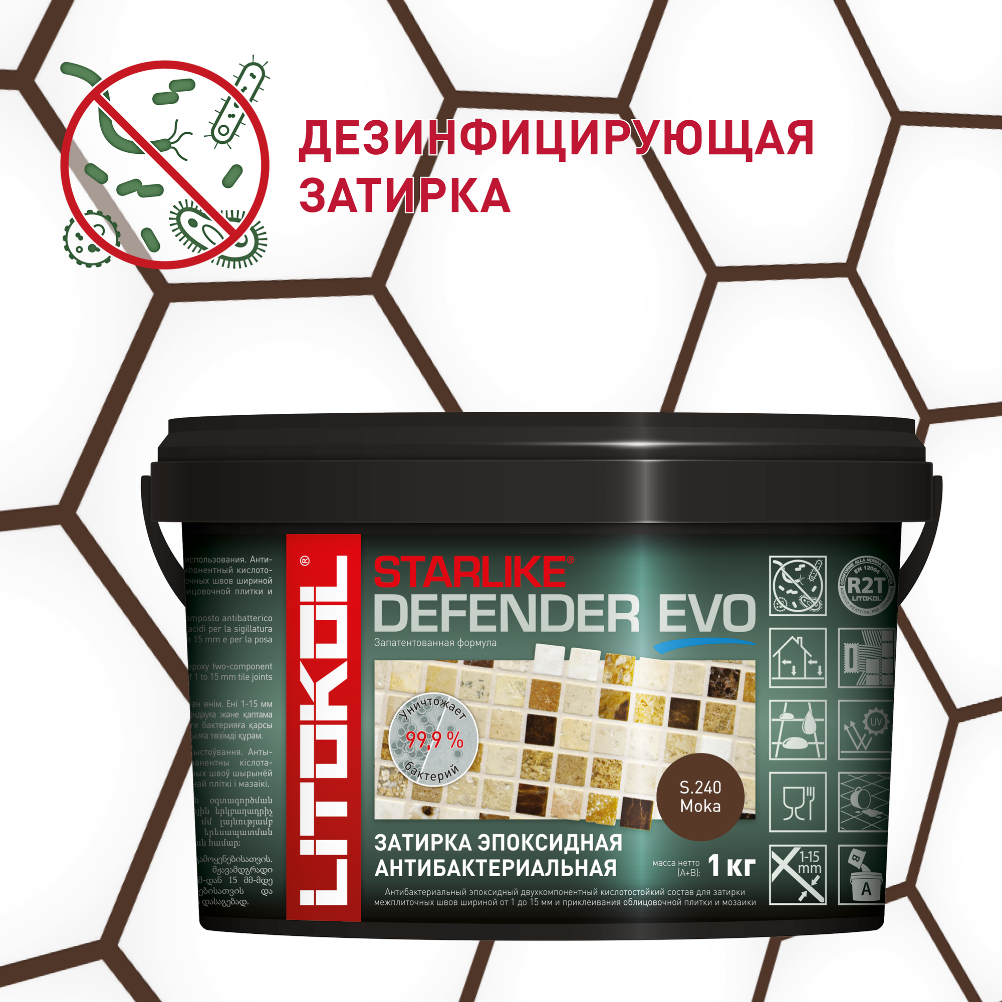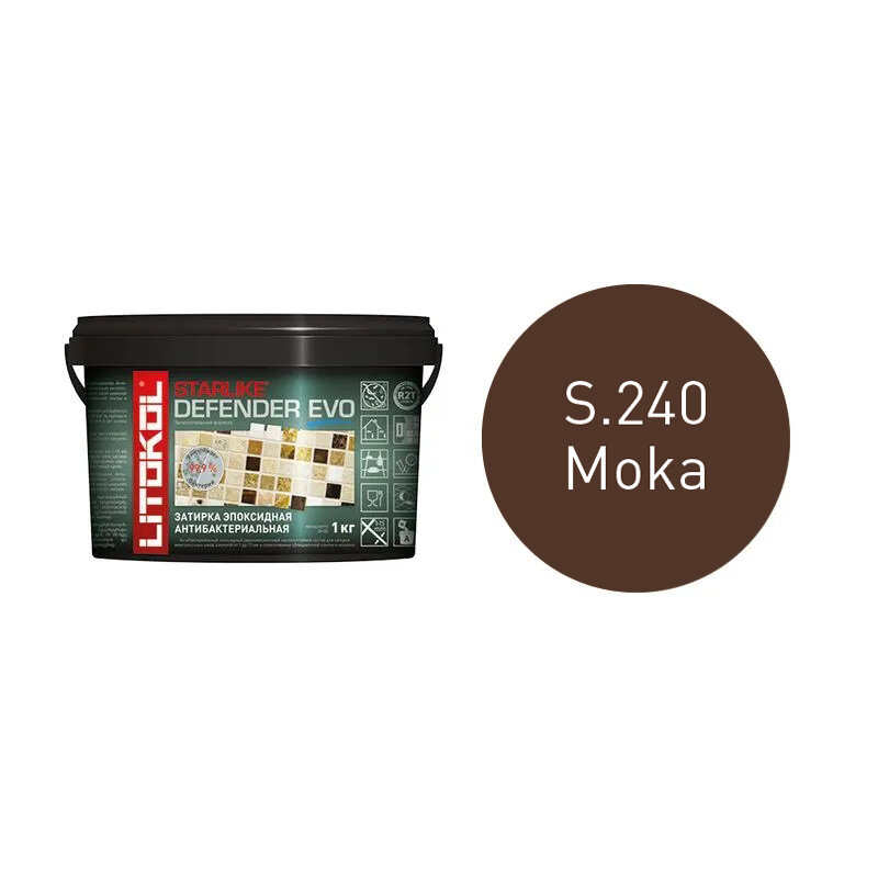 Купить Затирка для плитки эпоксидная LITOKOL STARLIKE DEFENDER EVO (старлайк дефендер ЭВО) S.240 Moka 1кг