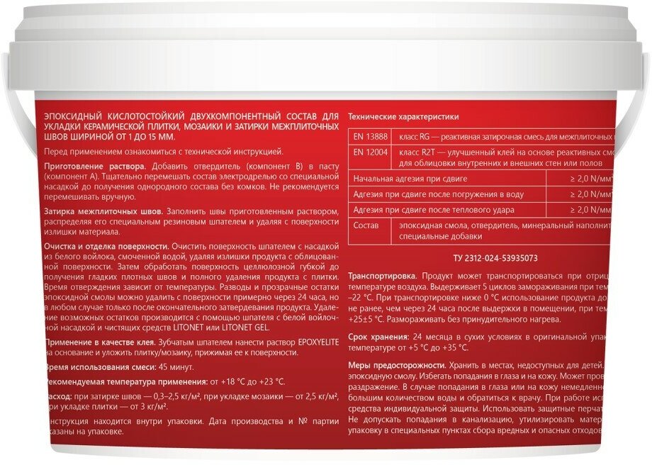 Эпоксидная затирка LITOKOL EpoxyElite E.100 Супербелый 1 кг