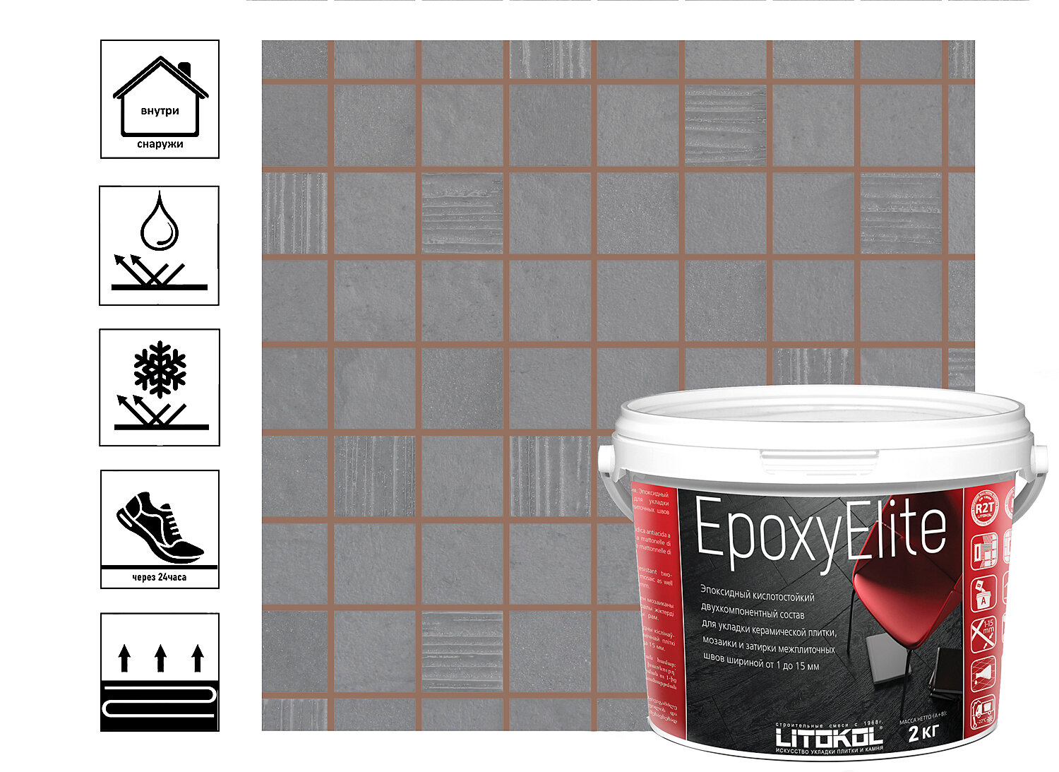 Затирка эпоксидная EpoxyElite для укладки и затирки мозаики и керамической плитки 2кг мокрый асфальт
