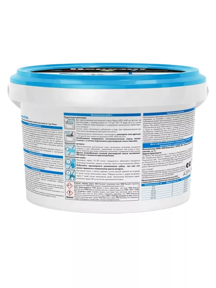 Затирка цементная CE 40 водоотталкивающая небесный 2 кг