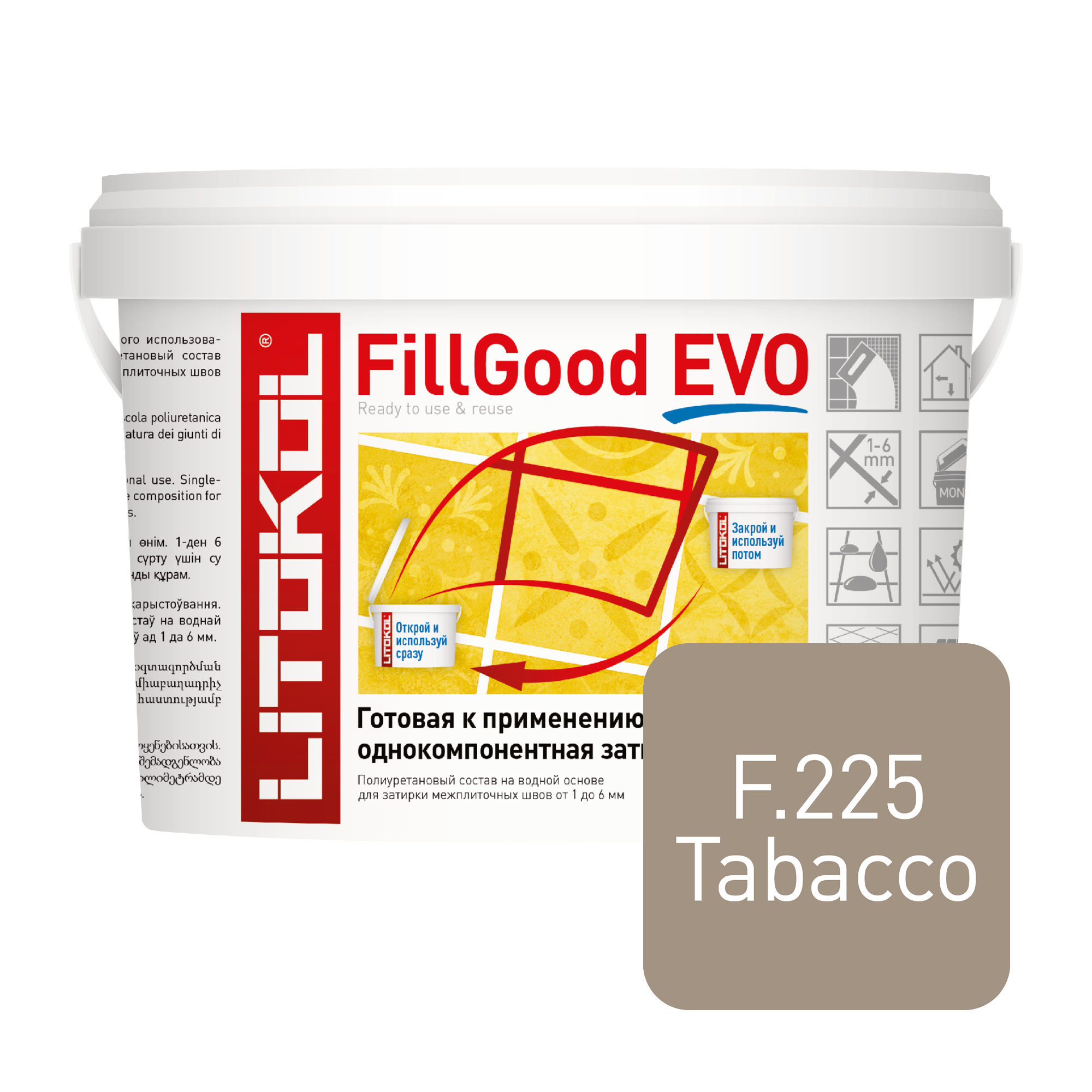 Купить Полиуретановая готовая затирка LITOKOL Fillgood EVO F.225 TABACCO, 2 кг