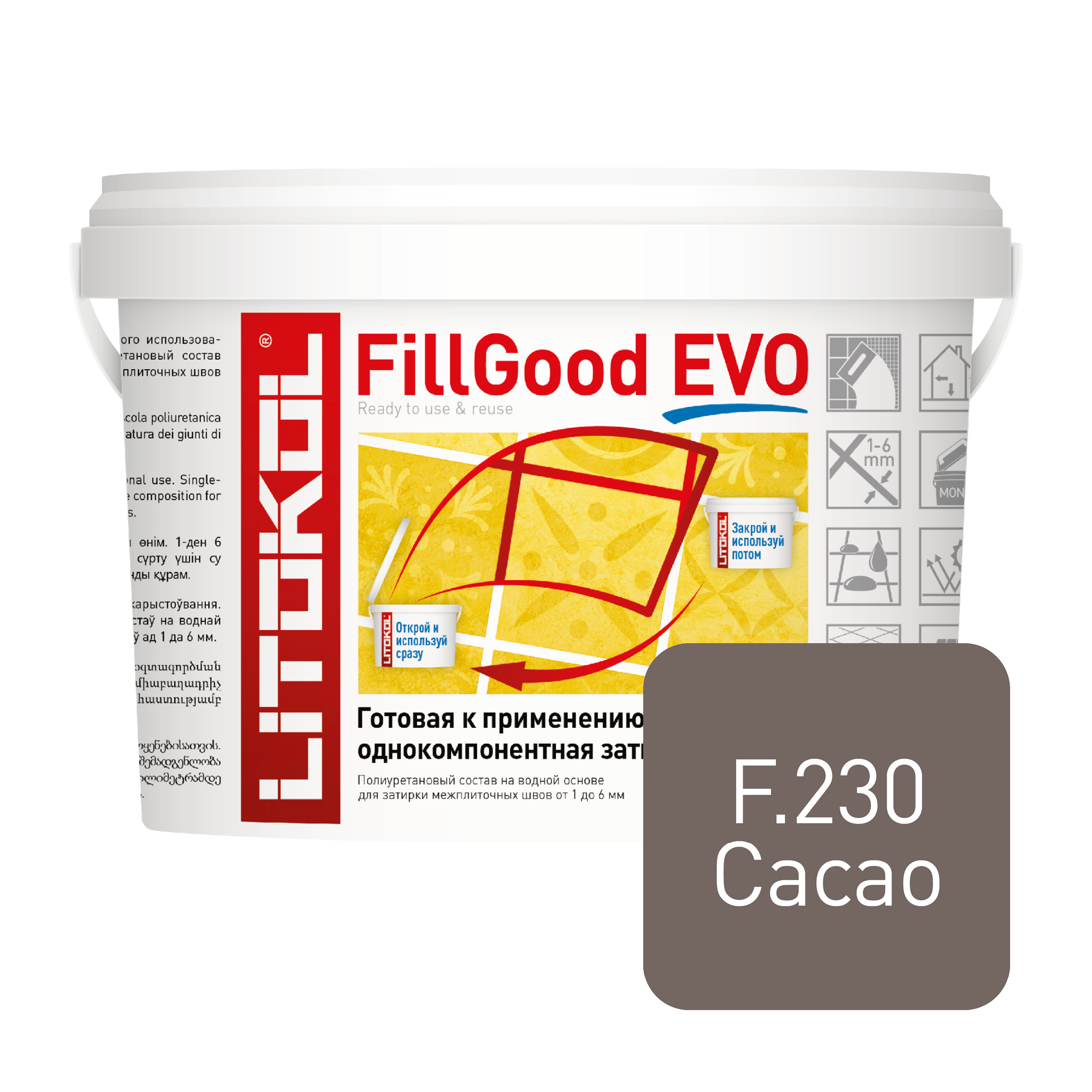 Купить Полиуретановая готовая затирка LITOKOL Fillgood EVO F.230 CACAO, 2 кг