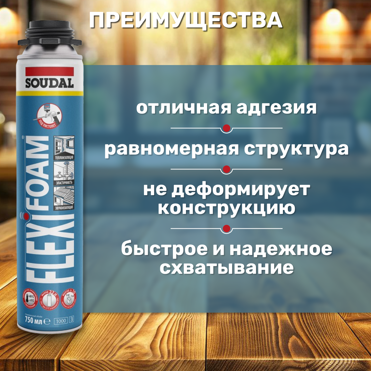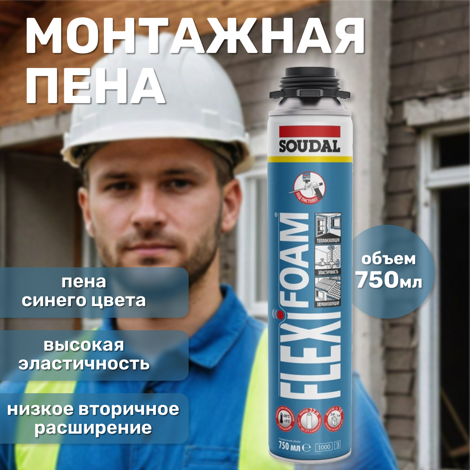 Профессиональная Cуперэластичная пистолетная монтажная герметизирующая пена с низким расширением SOUDAL FlexiFoam суперэластичная интересное: