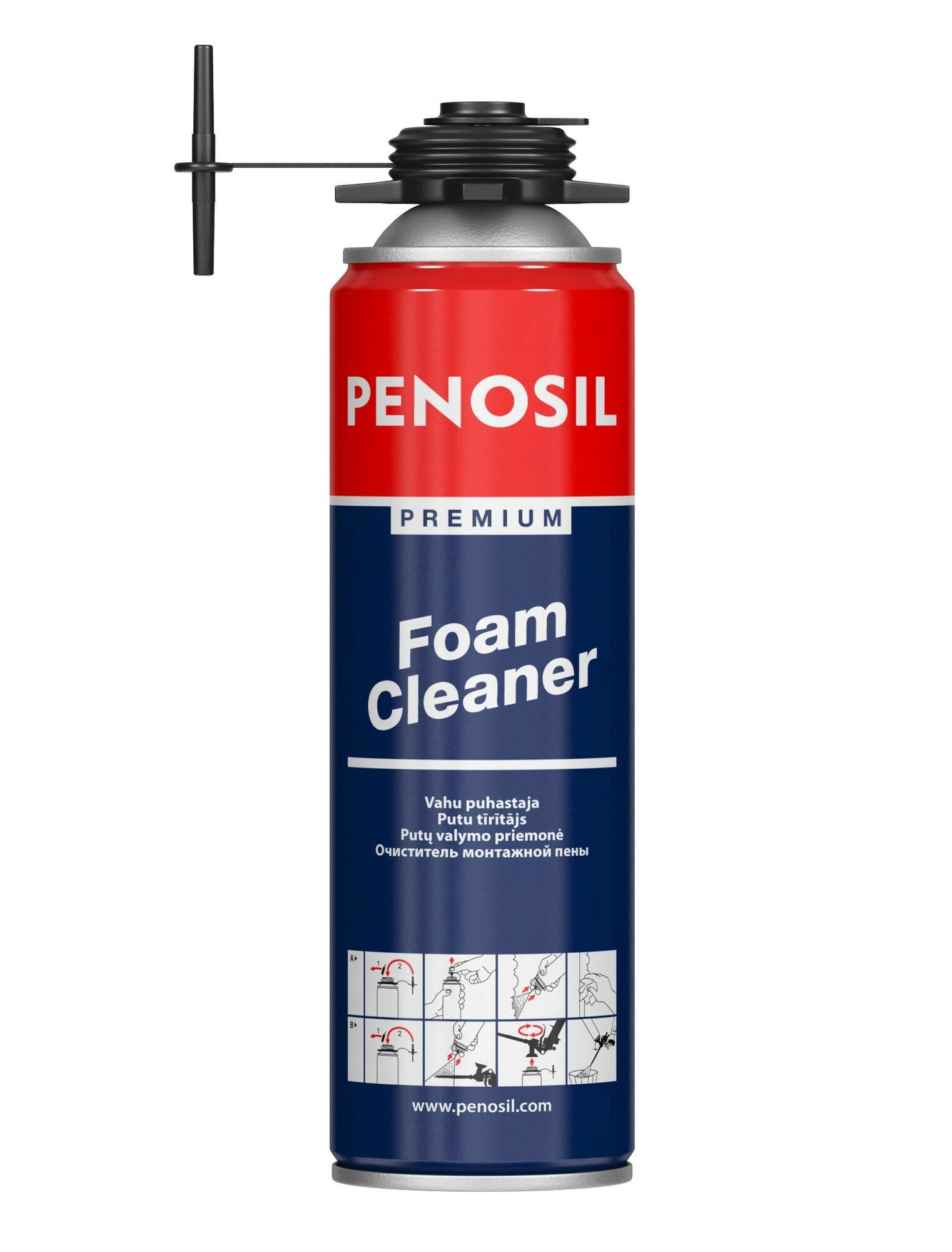 | Дополнительная информация | Очиститель монтажной пены Penosil CLEANER применяется для удаления жидкой, еще не затвердевшей монтажной пены с рабочих поверхностей, инструментов, одежды, а также очистки монтажных пистолетов и клапанов баллонов. |