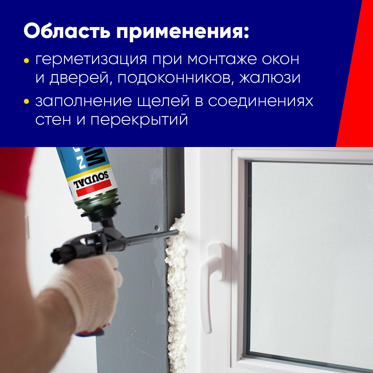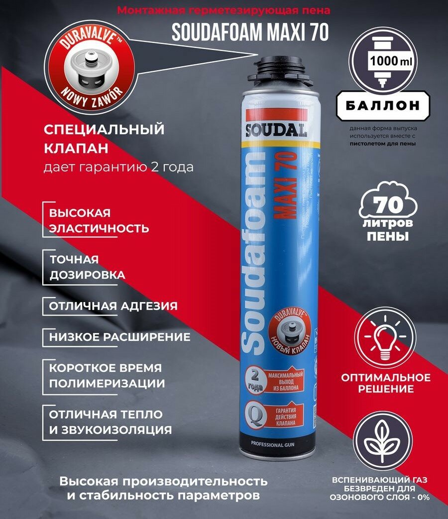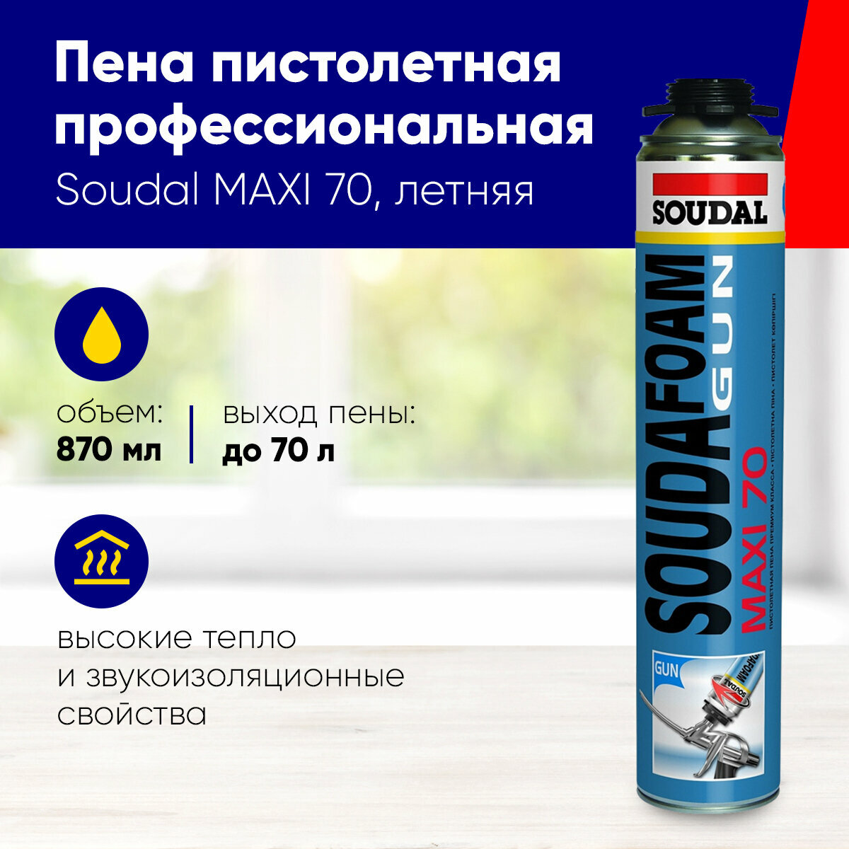 Пена профессиональная пистолетная Soudal MAXI Монтажная/ Полиуретановая / для пистолета / летняя / герметизирующая пена, выход до 70 литров, 1 штука интересное: