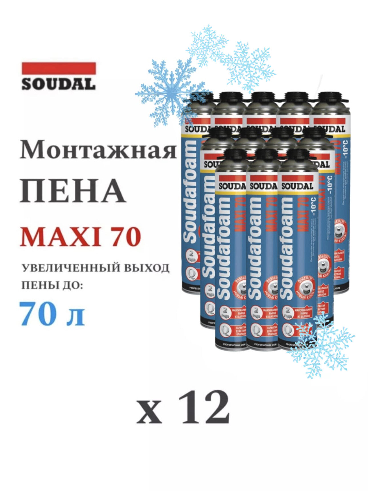 Пена монтажная зимняя Soudal Soudafoam Maxi 70, пистолетная, 870 мл