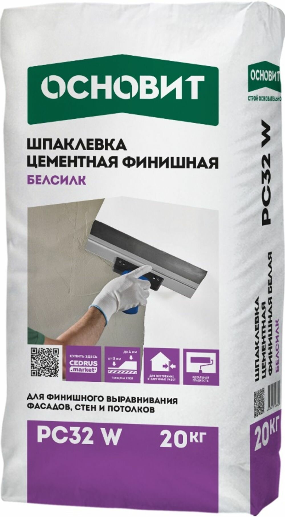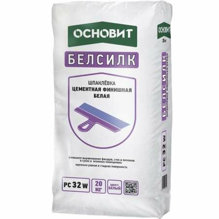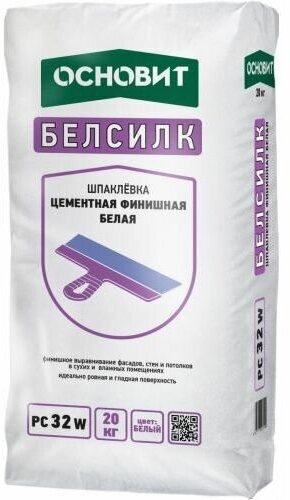 Шпаклевка цем. Основит Финишная БЕЛАЯ белсилк PC32 W Т-32, 20 кг 0-4 мм; фасад+влаж.помещ 70 (1шт) (PC32 W 4620013120487) интересное: