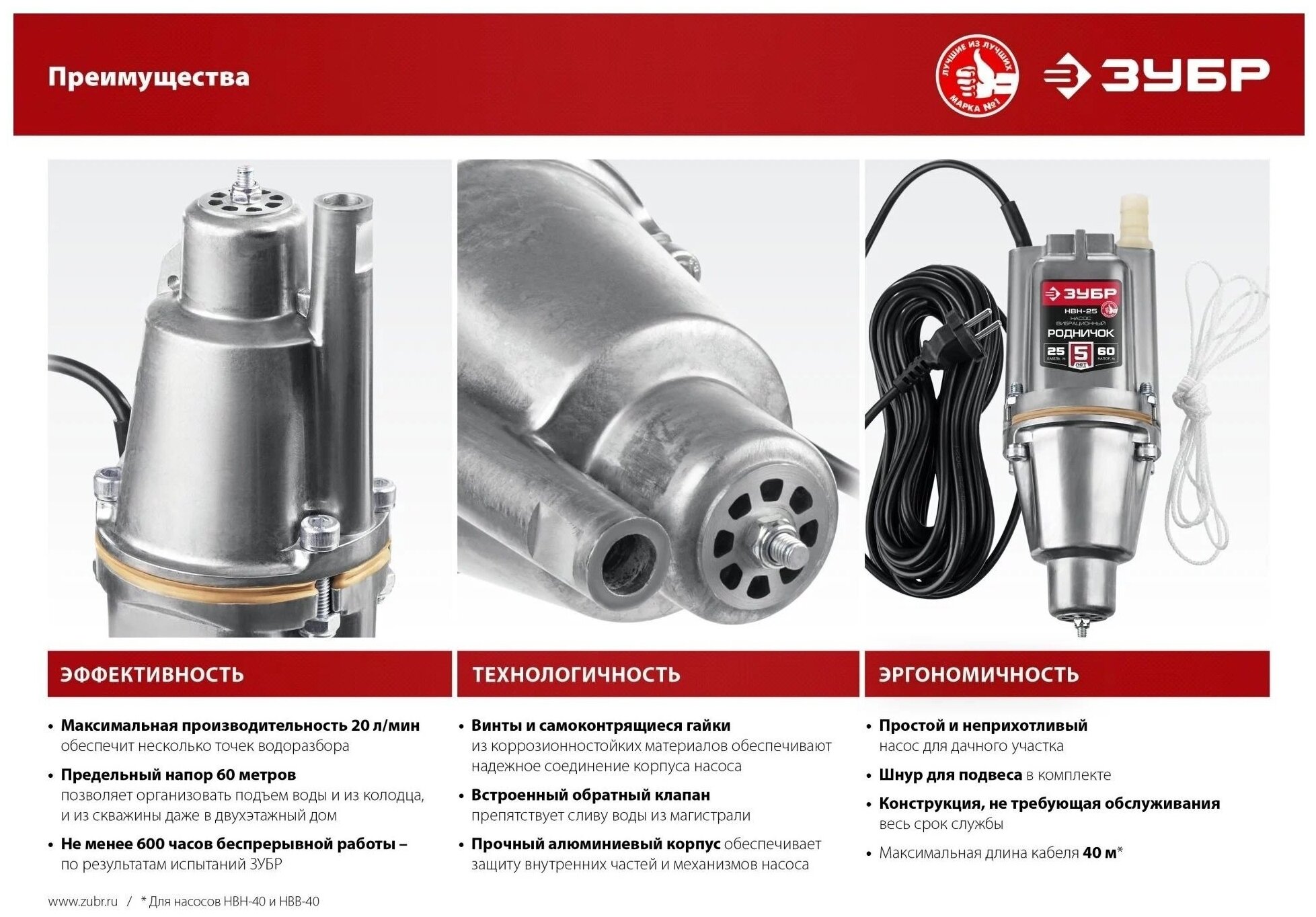 Ниже Вы можете прочитать отзывы на ЗУБР 25 м провод, с верхним забором воды, насос вибрационный Родничок-В НВВ-25 Мастер, ознакомится с подробными характеристиками, посмотреть интересные обзоры и фотографии на ЗУБР 25 м провод, с верхним забором воды, насос вибрационный Родничок-В НВВ-25 Мастер.