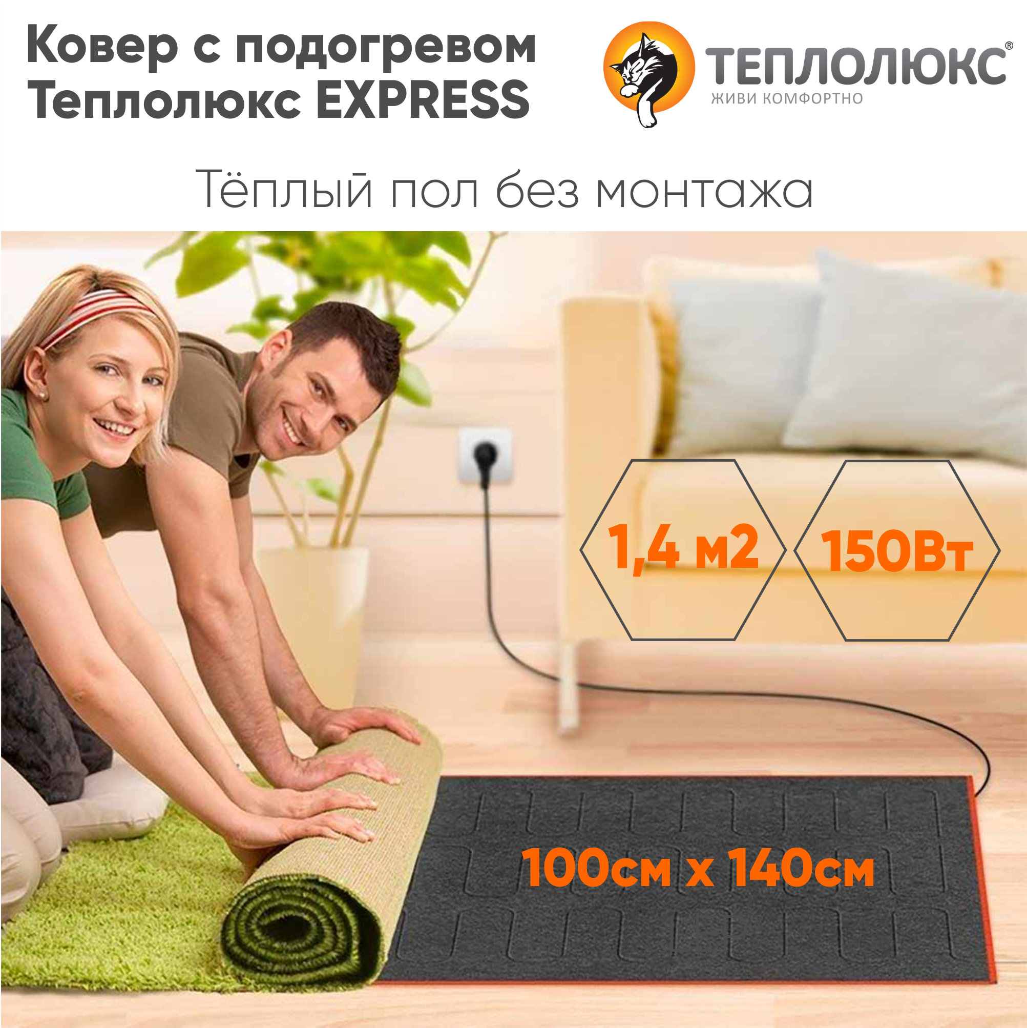 Мобильный теплый пол, Теплолюкс, Express, 1.4 м2, 100х140 см интересное: