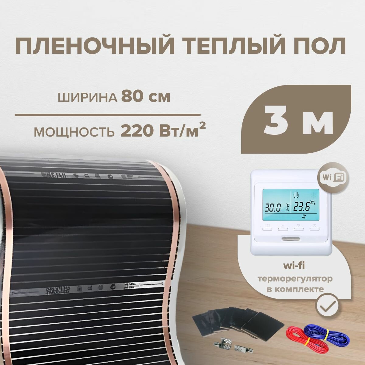 Пленочный теплый пол 3 м.п. комплект ширина 80см с Wi-Fi терморегулятором