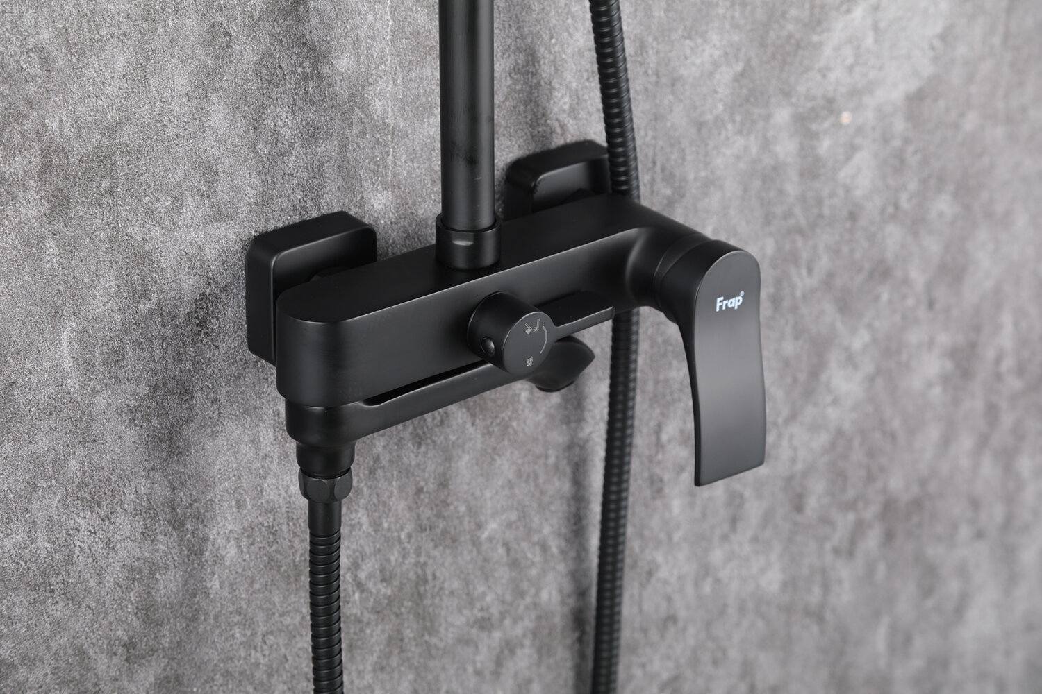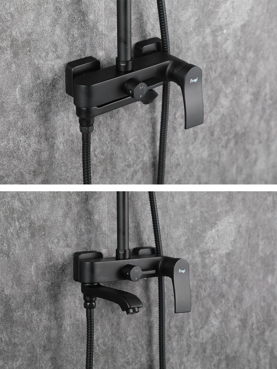 FRAP F2475-6, Душевая система (гарнитур) латунь, черный, поворотный излив, верхний душ