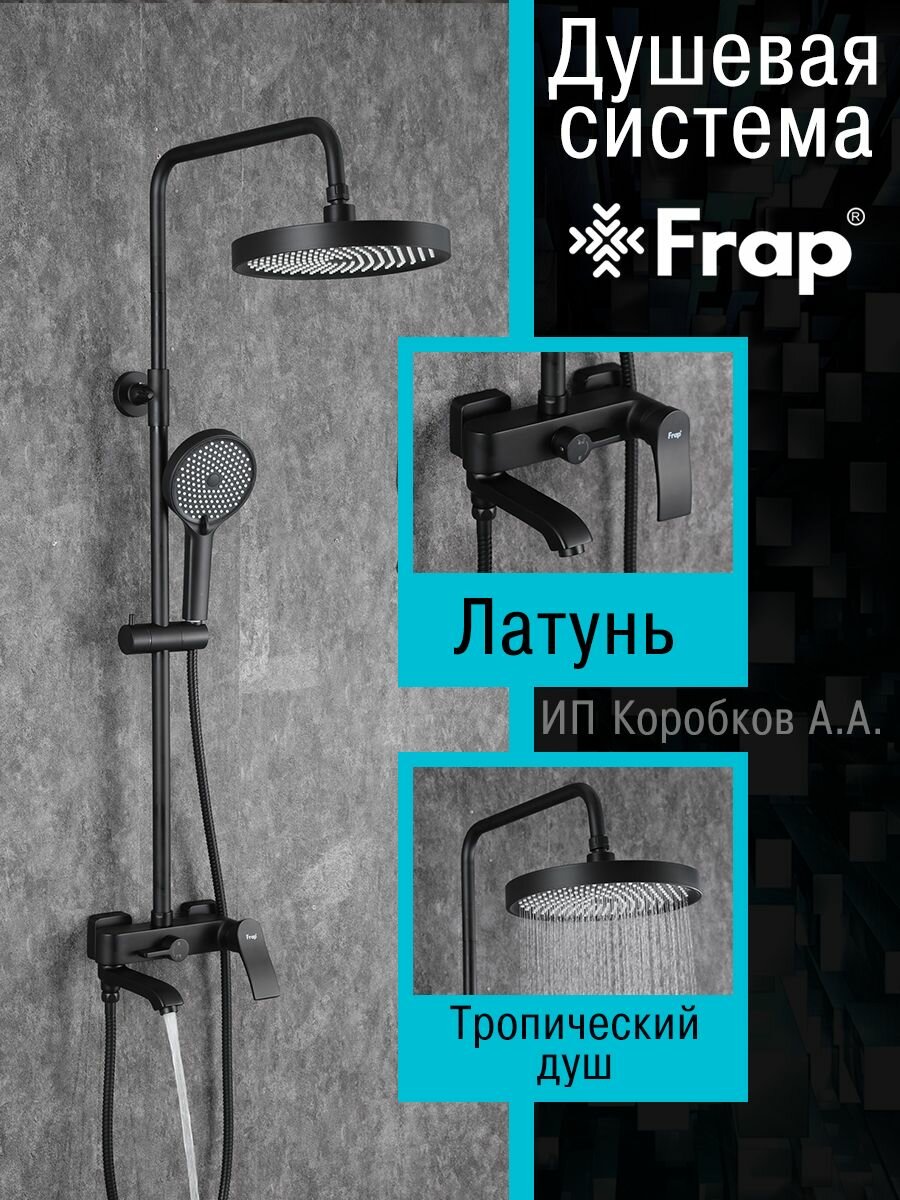 Душевая система с тропическим душем Frap F2475-6, латунь, черный