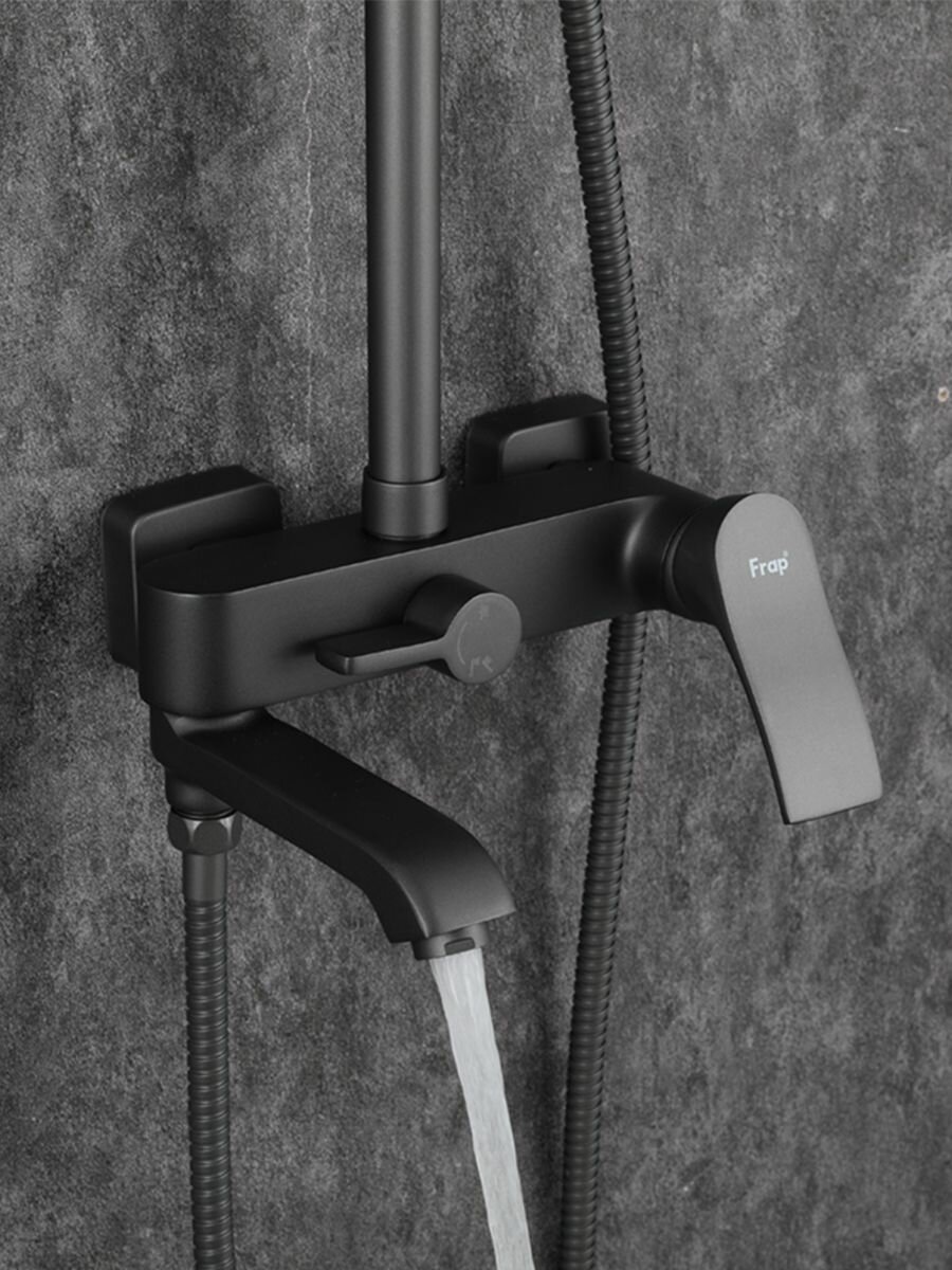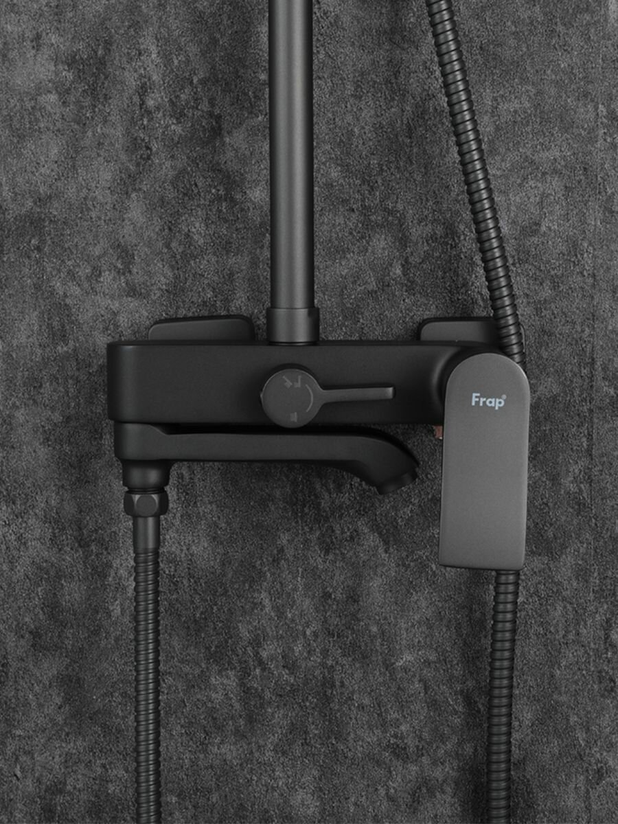 FRAP F2475-6, Душевая система (гарнитур) латунь, черный, поворотный излив, верхний душ