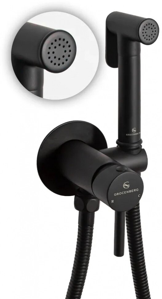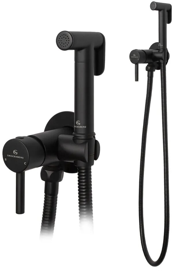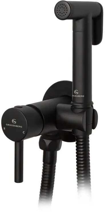 Смеситель с гигиеническим душем Grocenberg GB001, матовый черный никель-хромовое