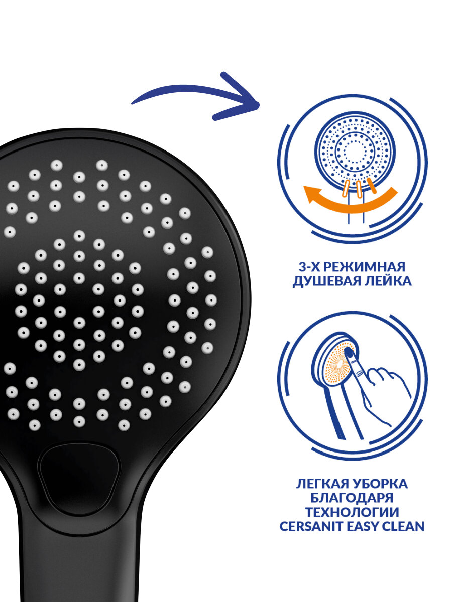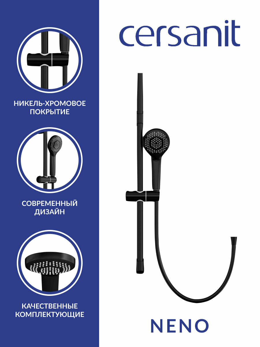 Душевой гарнитур со стойкой и шлангом черный Cersanit NENO 3 режима 63696