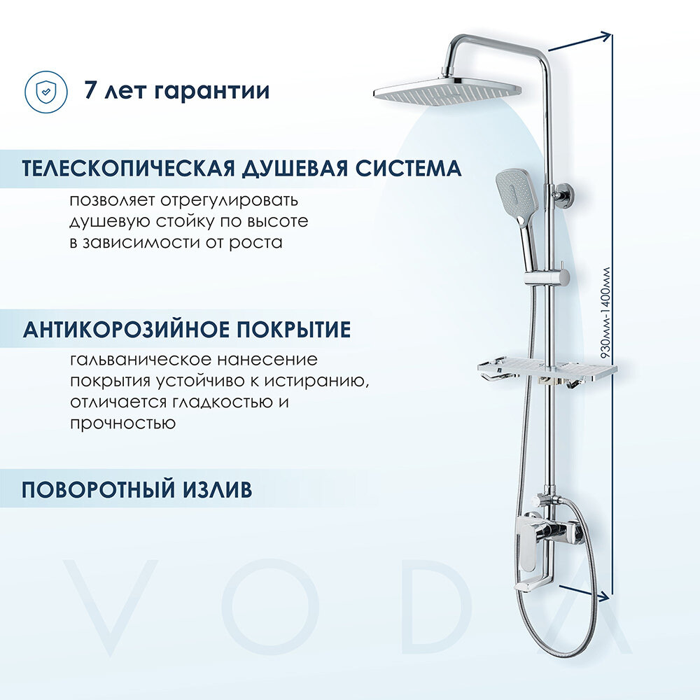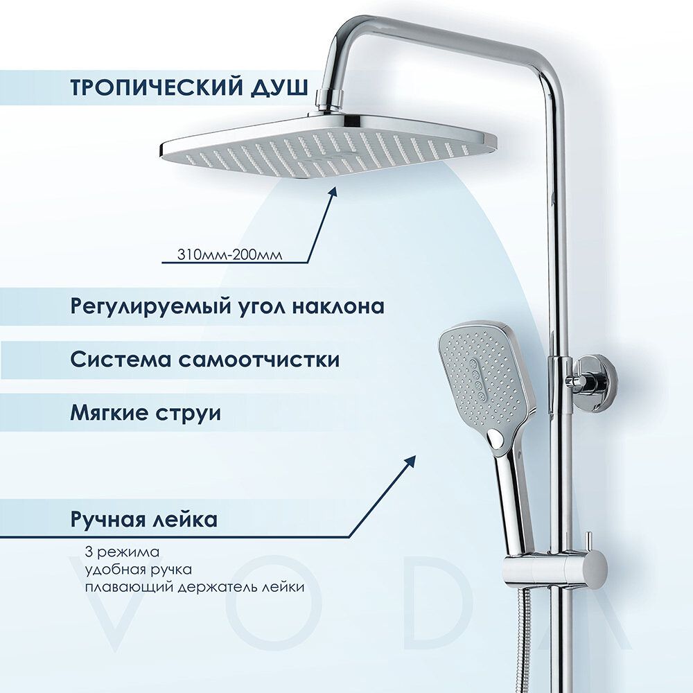 Душевая система VODA со смесителем, артикул VST111 интересное: