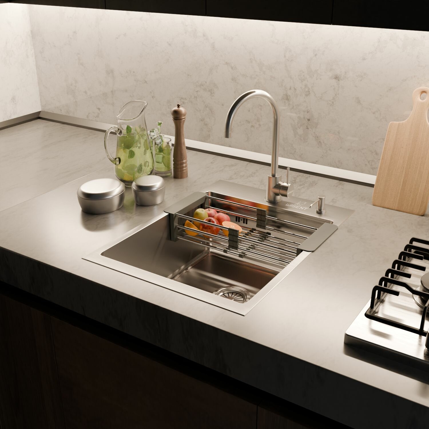 Комплект мойка для кухни нержавеющая врезная 40*50 с коландером Wisent WWS34050/W302644/WGER010 интересное: