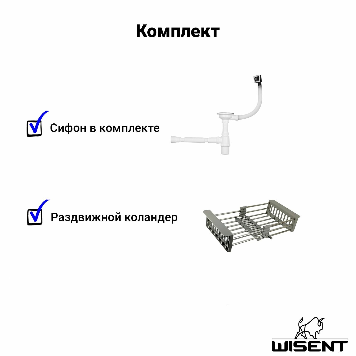 Купить Комплект мойка для кухни нержавеющая врезная 40*50 с коландером Wisent WWS34050/W302644/WGER010