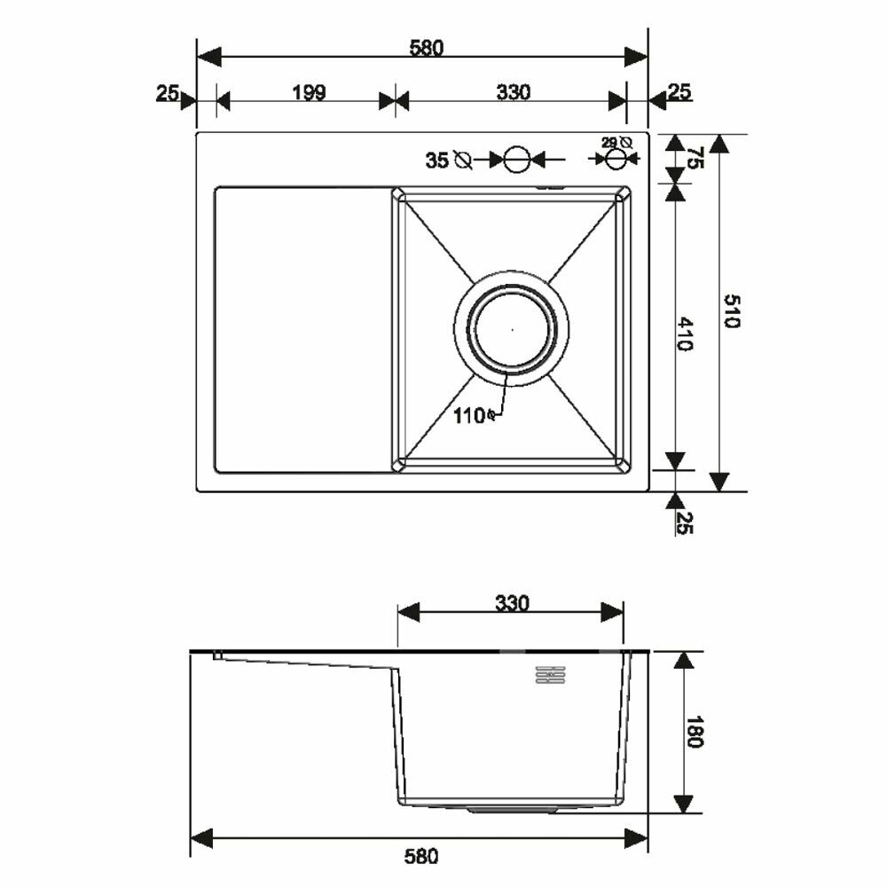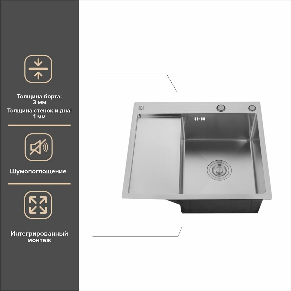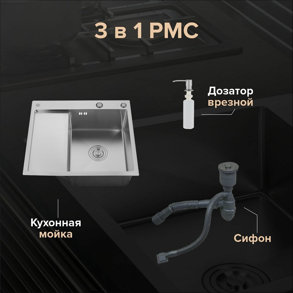 Кухонная мойка, РМС MRK-5851BL-L, нержавеющая сталь, с правым крылом, дозатор, сифон, гарантия
