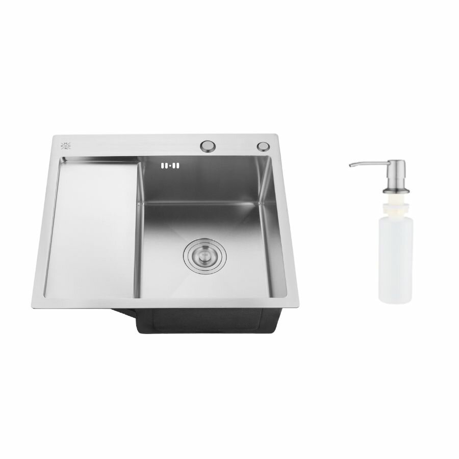 Кухонная мойка, РМС MRK-5851BL-R, нержавеющая сталь, с левым крылом, дозатор, сифон, гарантия
