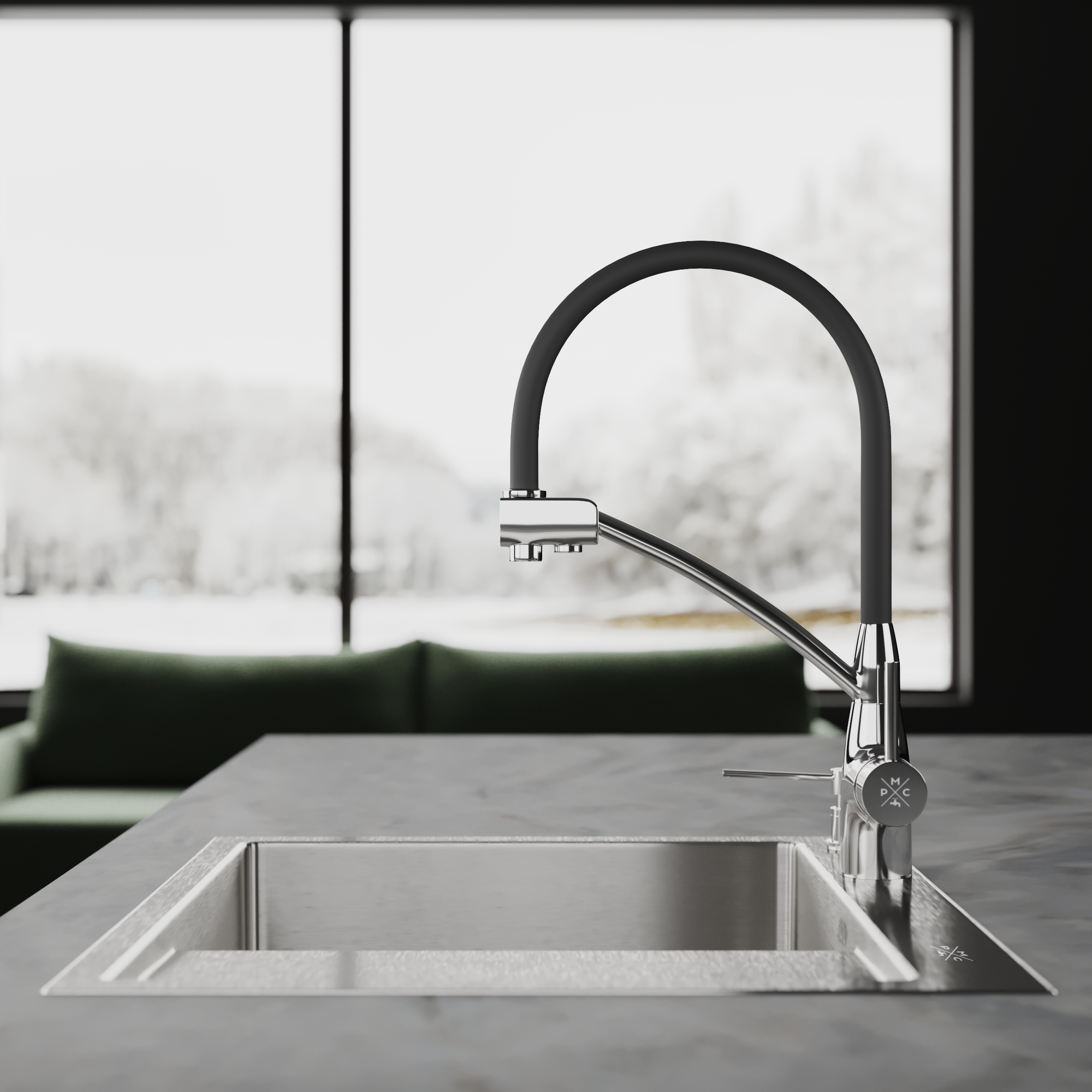 Кухонная мойка из нержавеющей стали, РМС MR-5843BL, дозатор, корзина раздвижная для сушки, сифон, PVD покрытие
