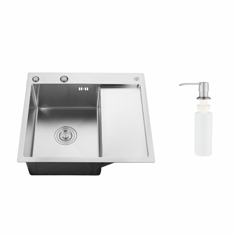 Кухонная мойка, РМС MRK-5851BL-L, нержавеющая сталь, с правым крылом, дозатор, сифон, гарантия