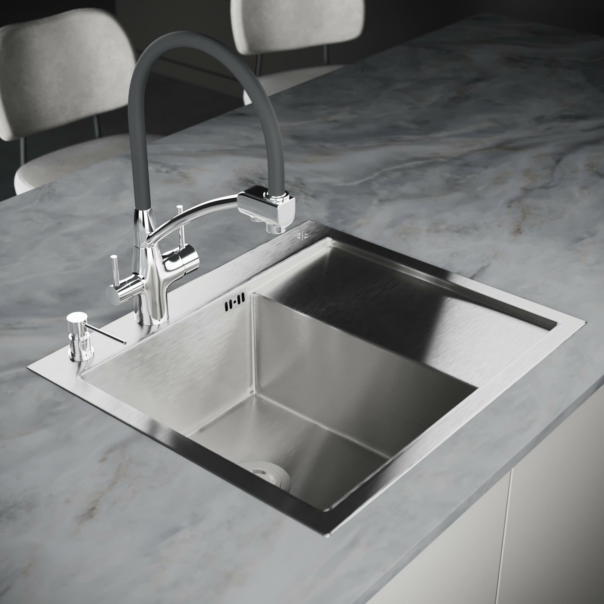 Купить Кухонная мойка, РМС MRK-5851L, нержавеющая сталь, с правым крылом, дозатор, сифон, гарантия