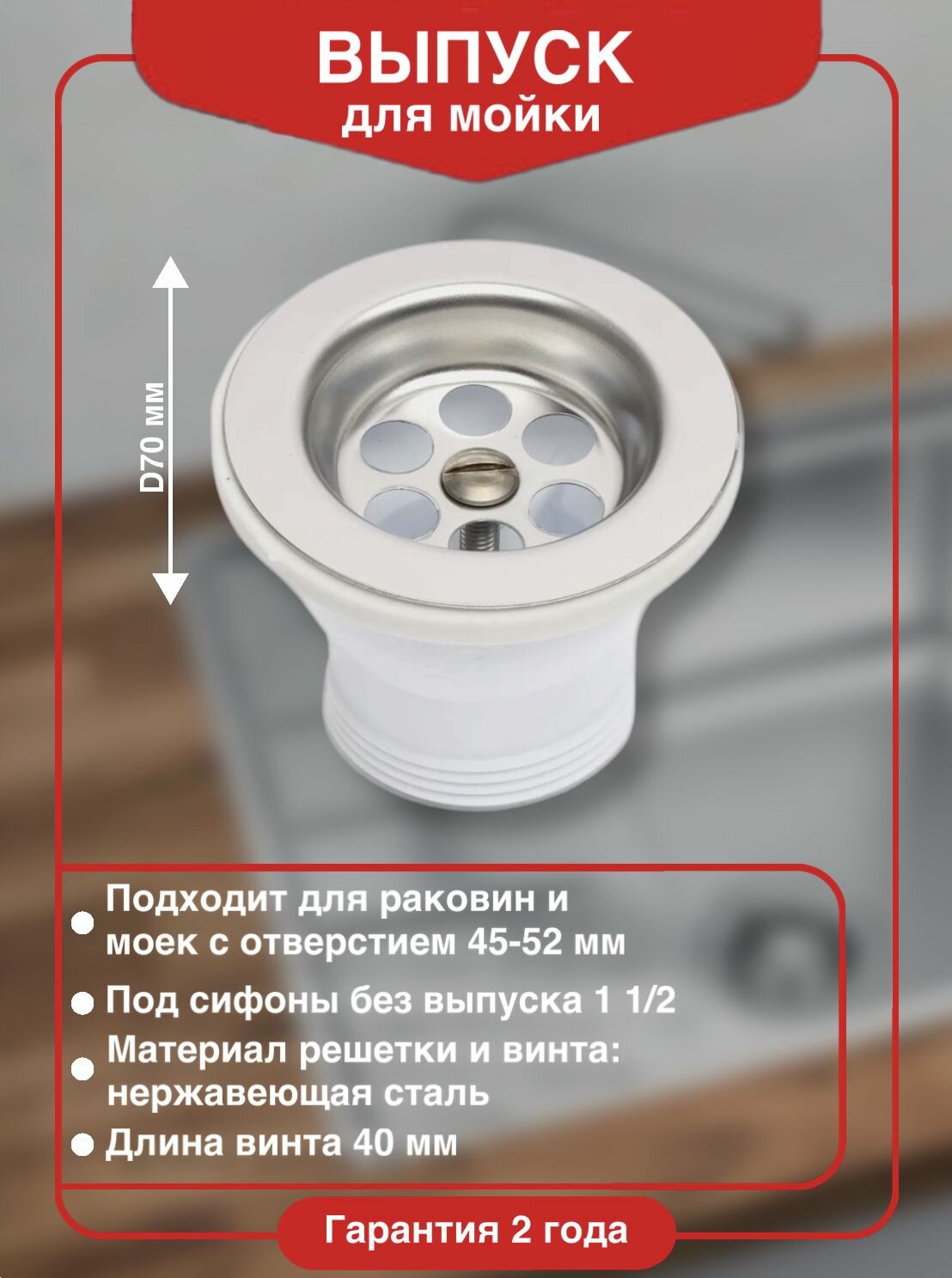 Выпуск для мойки WIRQUIN с нержавеющей решеткой D 70 мм интересное: