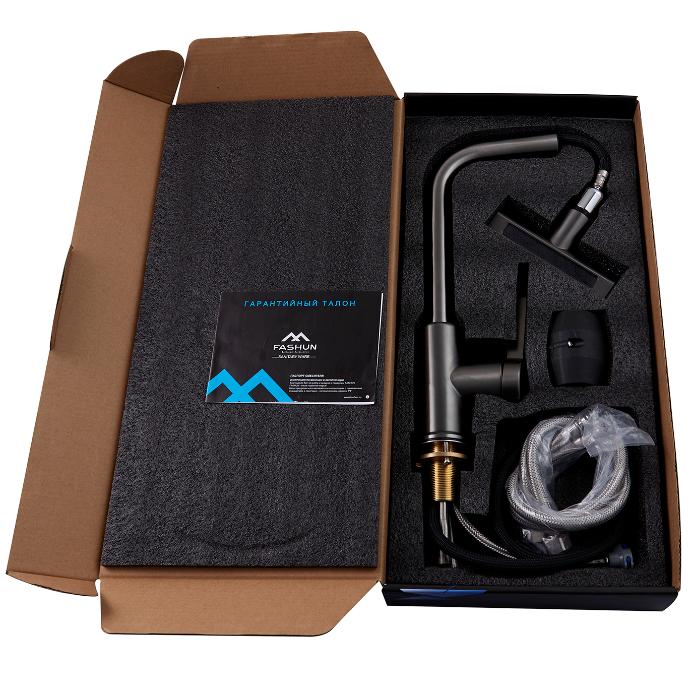 Ниже Вы можете прочитать отзывы на Смеситель для кухни с выдвижной 4 режимной лейкой, с гибким изливом, кран для кухни Fashun A56131-17, цвет: графит, ознакомится с подробными характеристиками, посмотреть интересные обзоры и фотографии на Смеситель для кухни с выдвижной 4 режимной лейкой, с гибким изливом, кран для кухни Fashun A56131-17, цвет: графит.