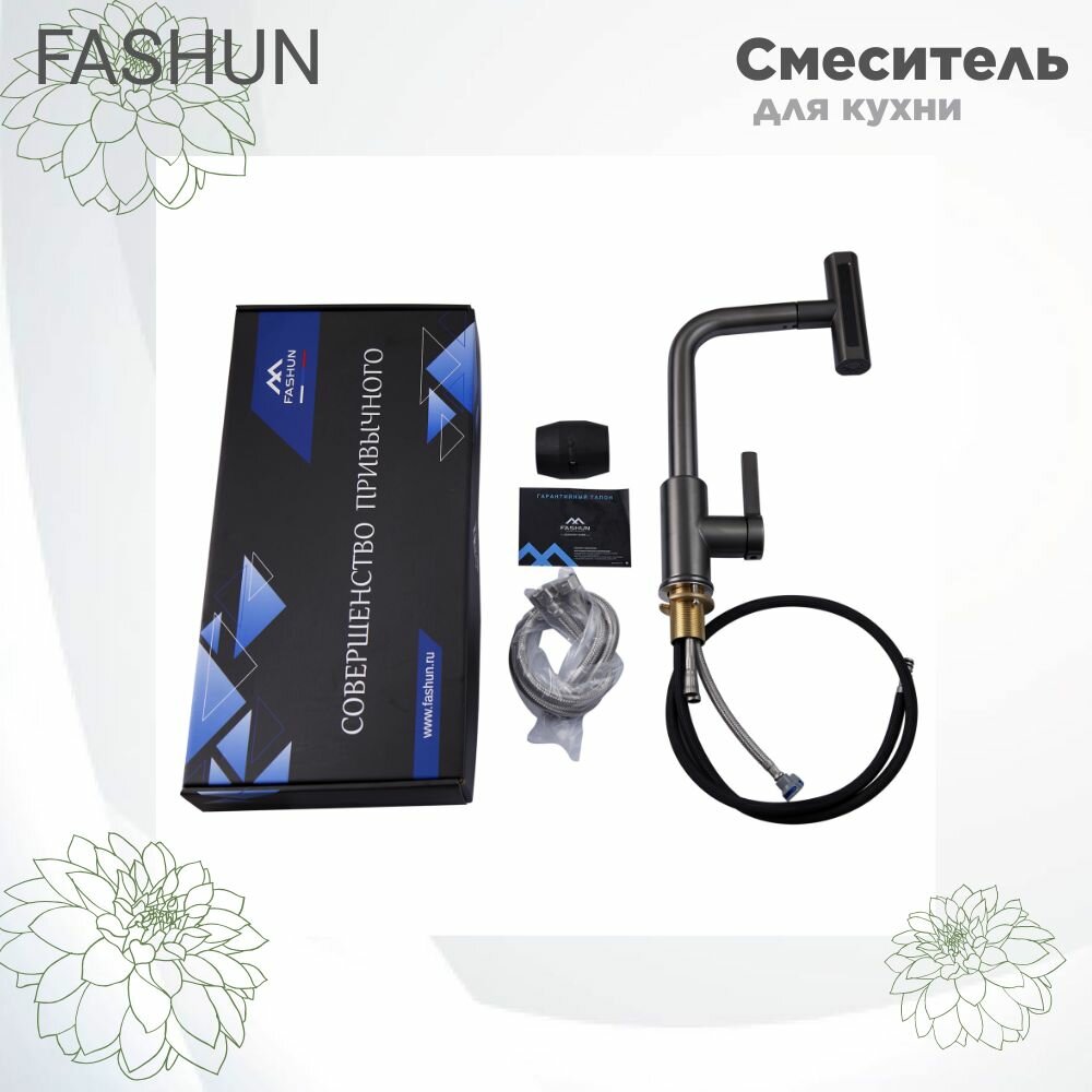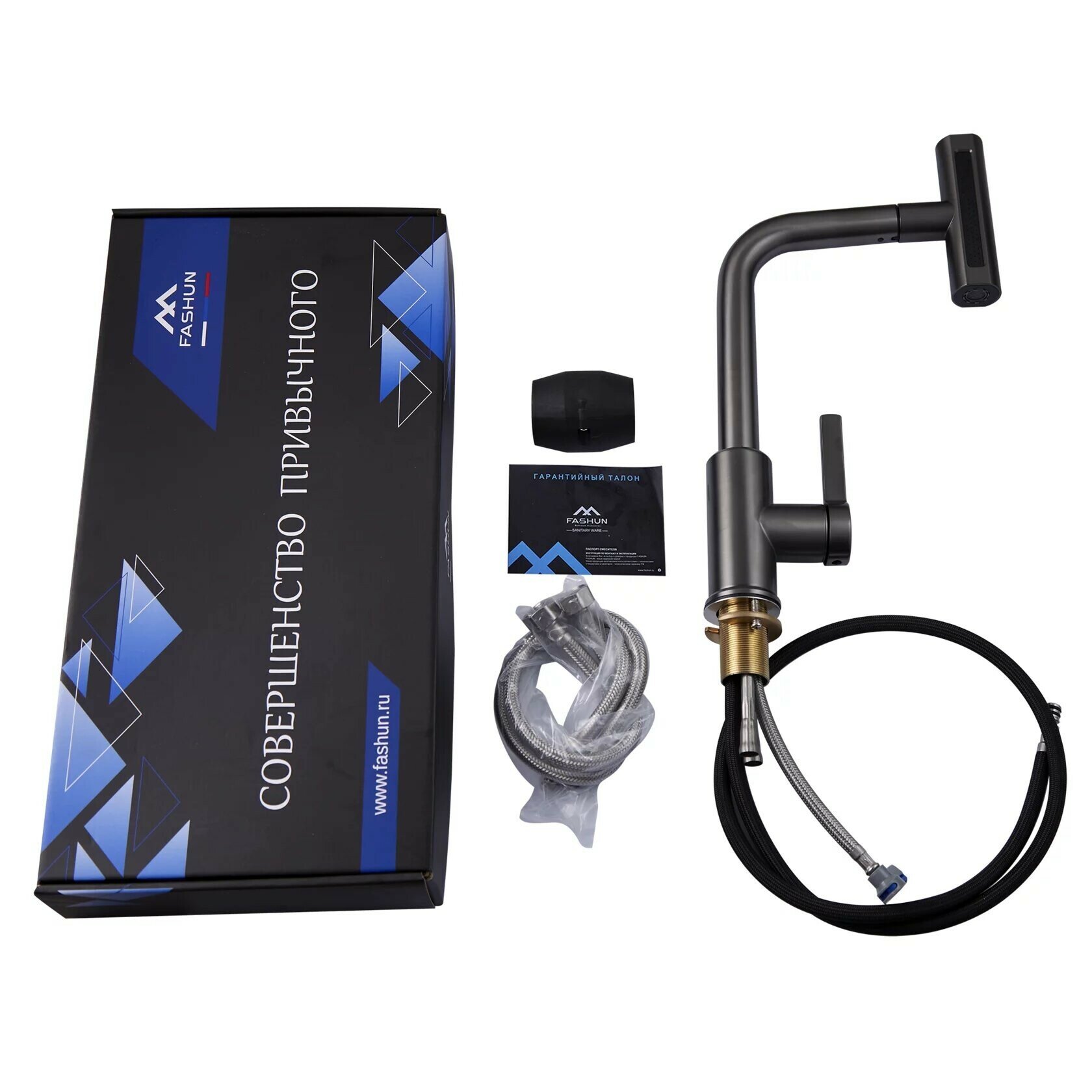 Смеситель для кухни с выдвижной 4 режимной лейкой, с гибким изливом, кран для кухни Fashun A56131-17, цвет: графит интересное: