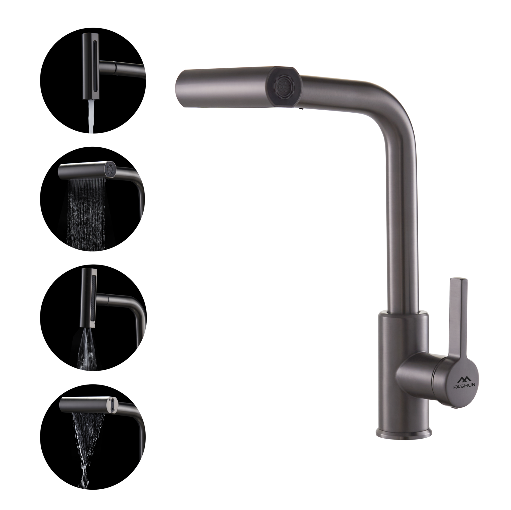 Купить Смеситель для кухни с выдвижной 4 режимной лейкой, с гибким изливом, кран для кухни Fashun A56131-17, цвет: графит