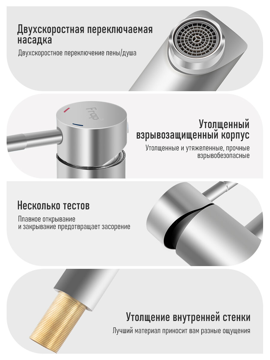 Смеситель кран для раковины умывальника для ванны Frap YF10801 нержавеющая сталь сатин интересное: