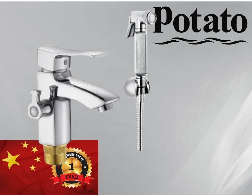 Смеситель на раковину Potato P12209 с гигиенической лейкой
