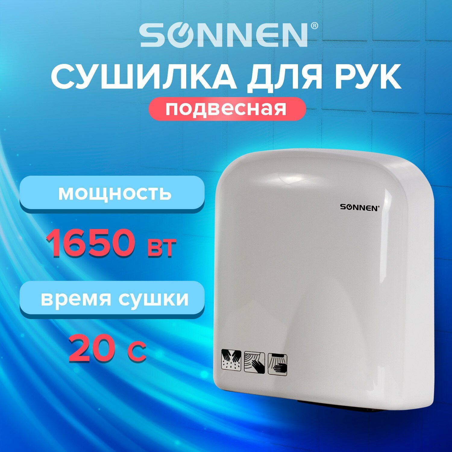 Купить Сушилка для рук Sonnen HD-165, 1650 Вт, пластиковый корпус, белая 604191